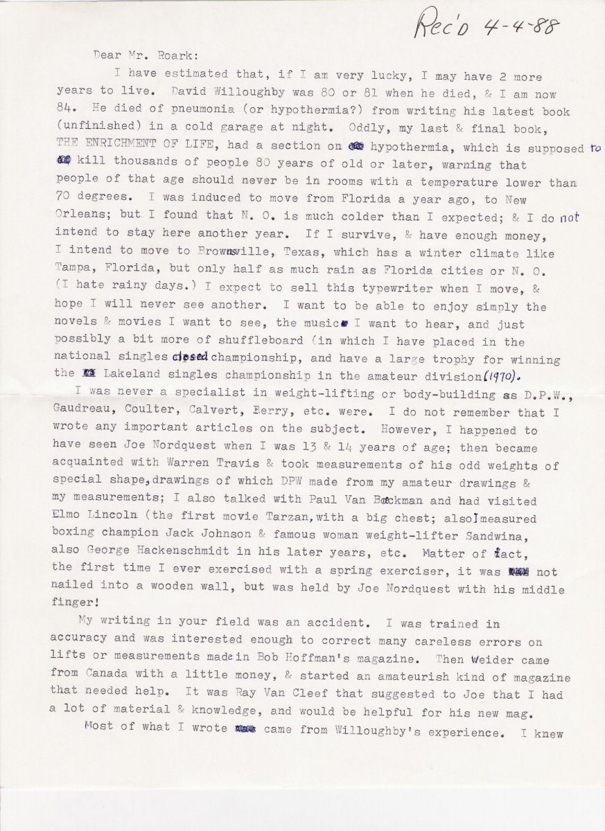 [Previous entry: "7/8/05: AAU Mr. America Winners: Those Gone and Those Living"] [Main Index] [Next entry: "7/22/05: George Weaver Letter to Joe (cont.)"]