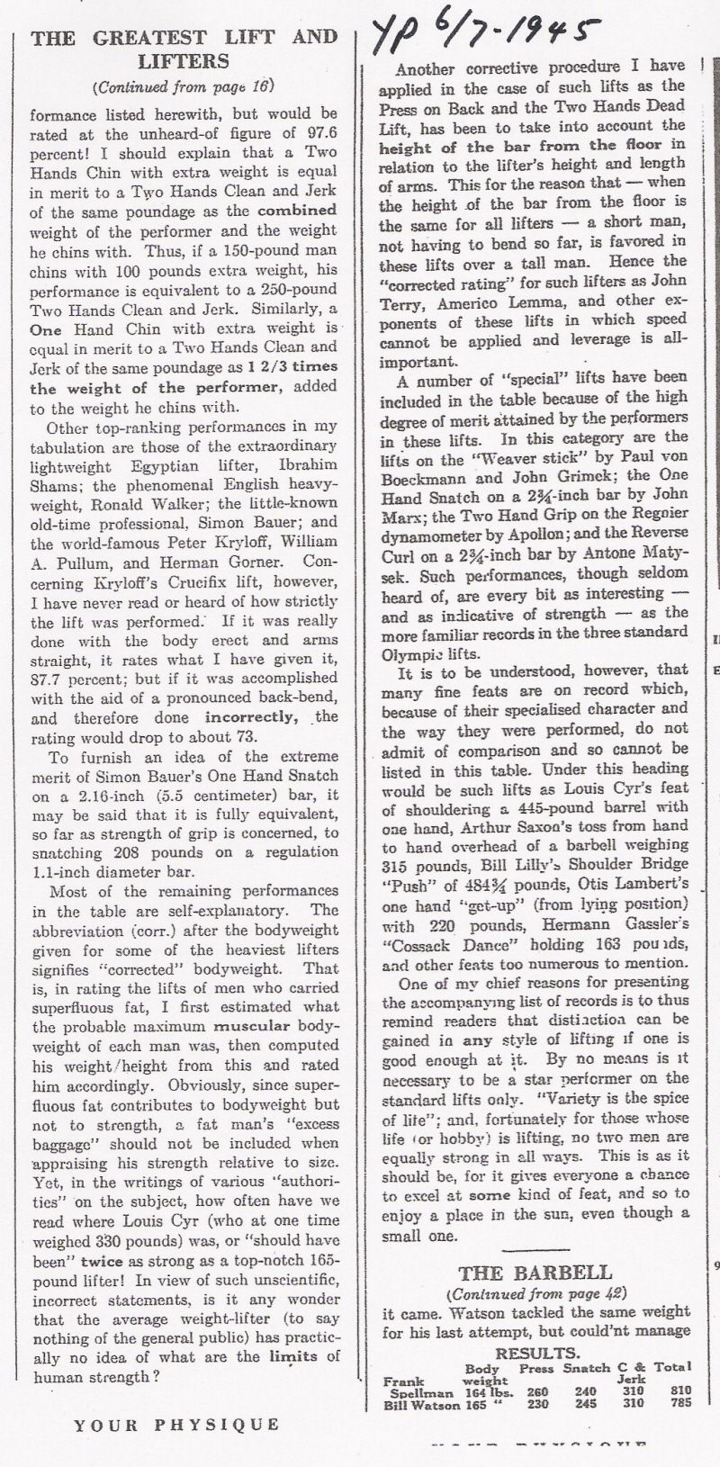 Willoughby: Leading Performances in Weightlifting, part 2.