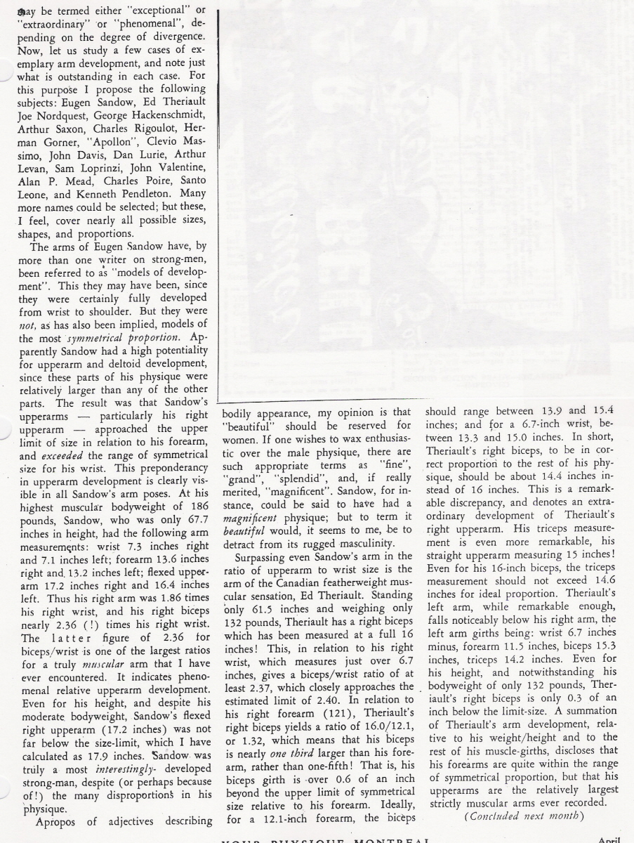 [Previous entry: "8/11/06: Willougby's 'Arm Size & Proportion' from Your Physique April 1948"] [Main Index] [Next entry: "8/25/06: Willoughby on Arm Development from Your Physique May 1948"]
