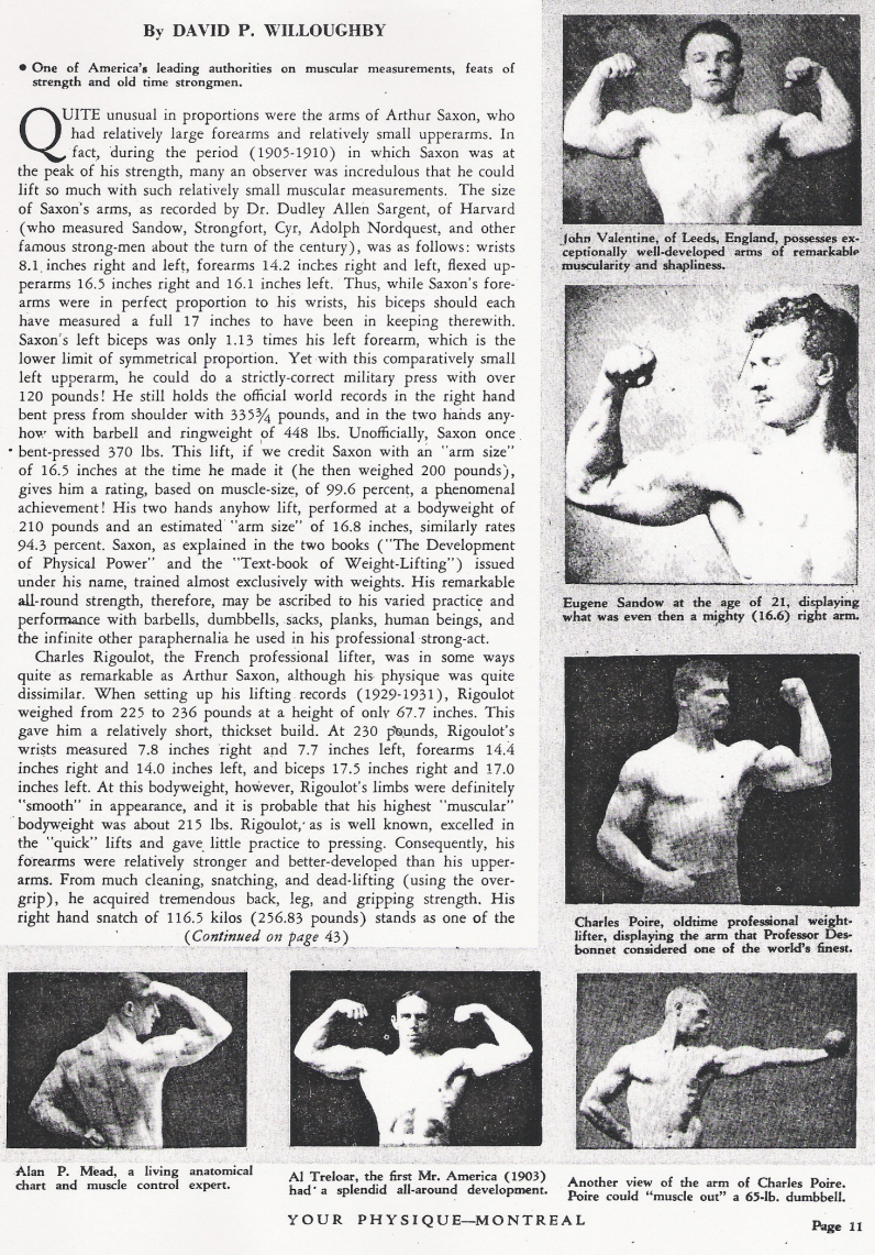 08/25/2006 Entry: "8/25/06: Willoughby on Arm Development from Your Physique May 1948"