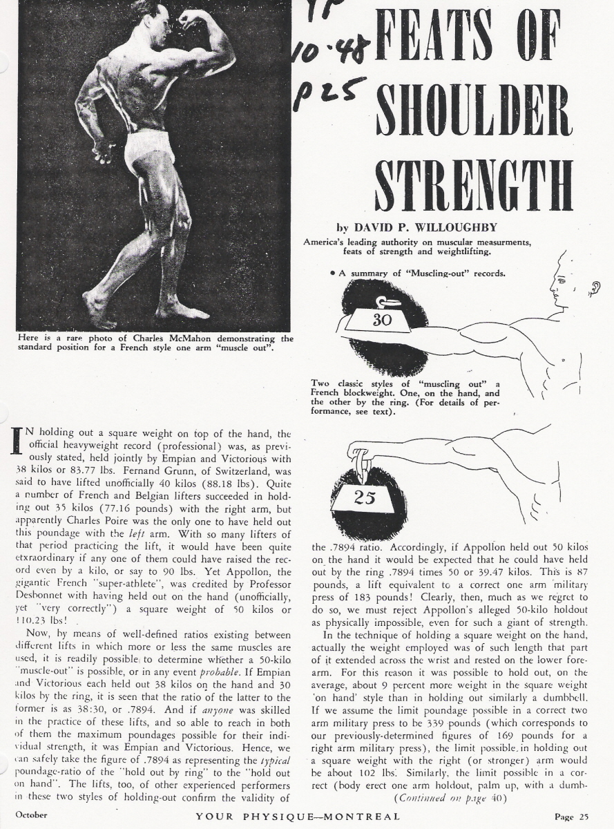 11/10/2006 Entry: "11/10/06: Willoughby on 'Feats of Shoulder Strength' from Your Physique October 1948"