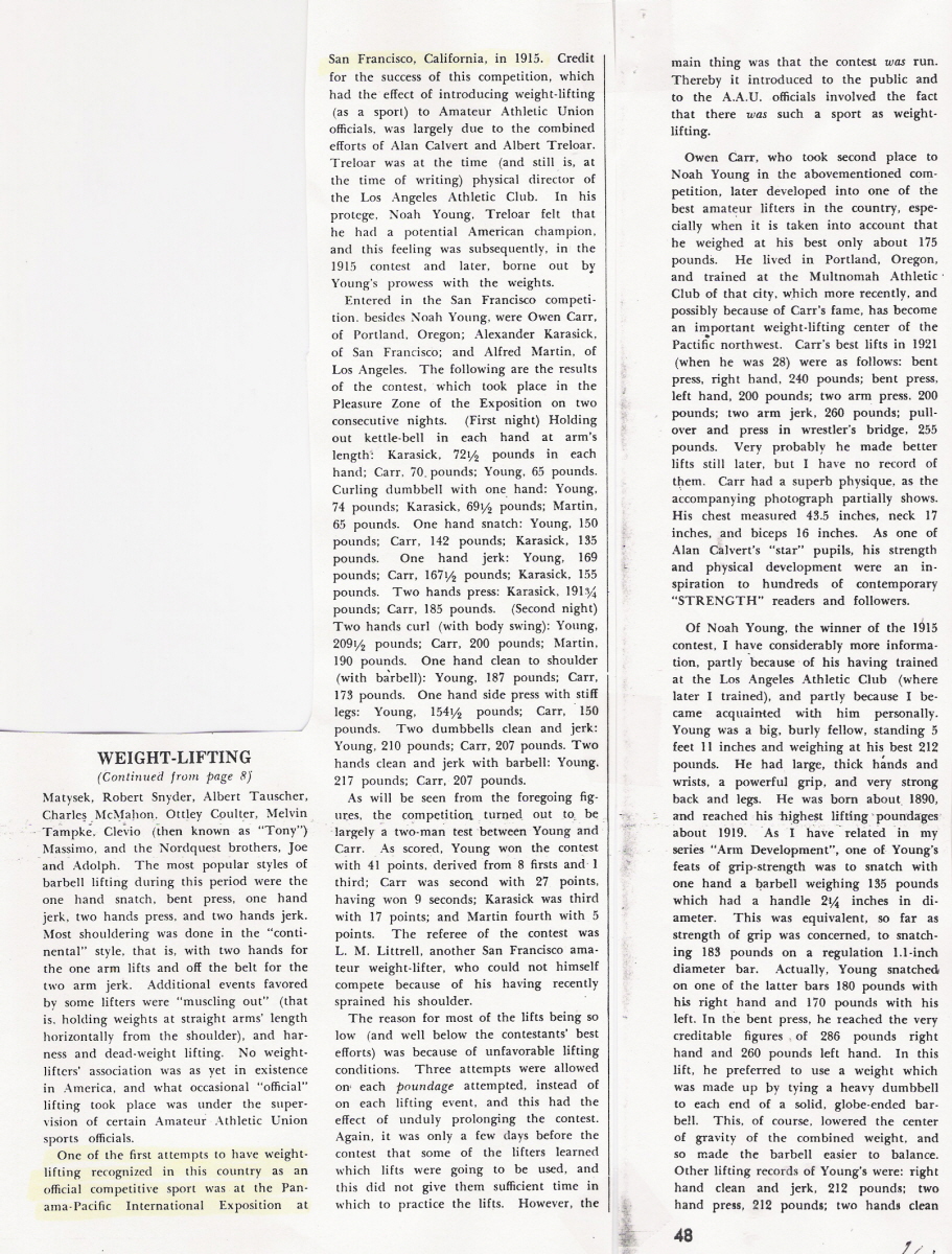 [Previous entry: "6/29/07: DPW on Alan Calvert, History of American WL"] [Main Index] [Next entry: "7/13/07: Conclusion by Willoughby on Chest Measurements from Your Physique August 1949"]