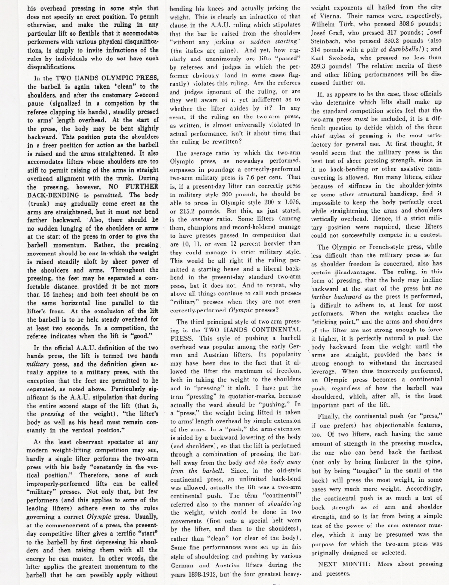 [Previous entry: "1/25/2008: Conclusion of Willoughby on Hip and Thigh Development from May 1950 Your Physique"] [Main Index] [Next entry: "2/8/2008: Willoughby continues with more on the Two Hands Press, from Your Physique June 1950"]