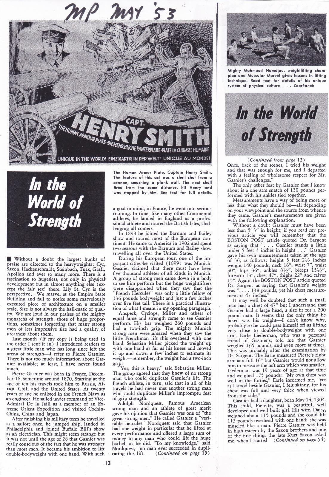 09/09/2011 Entry: "9/9/2011: In The World of Strength by Leo Gaudreau from Muscle Poewer May 1953"