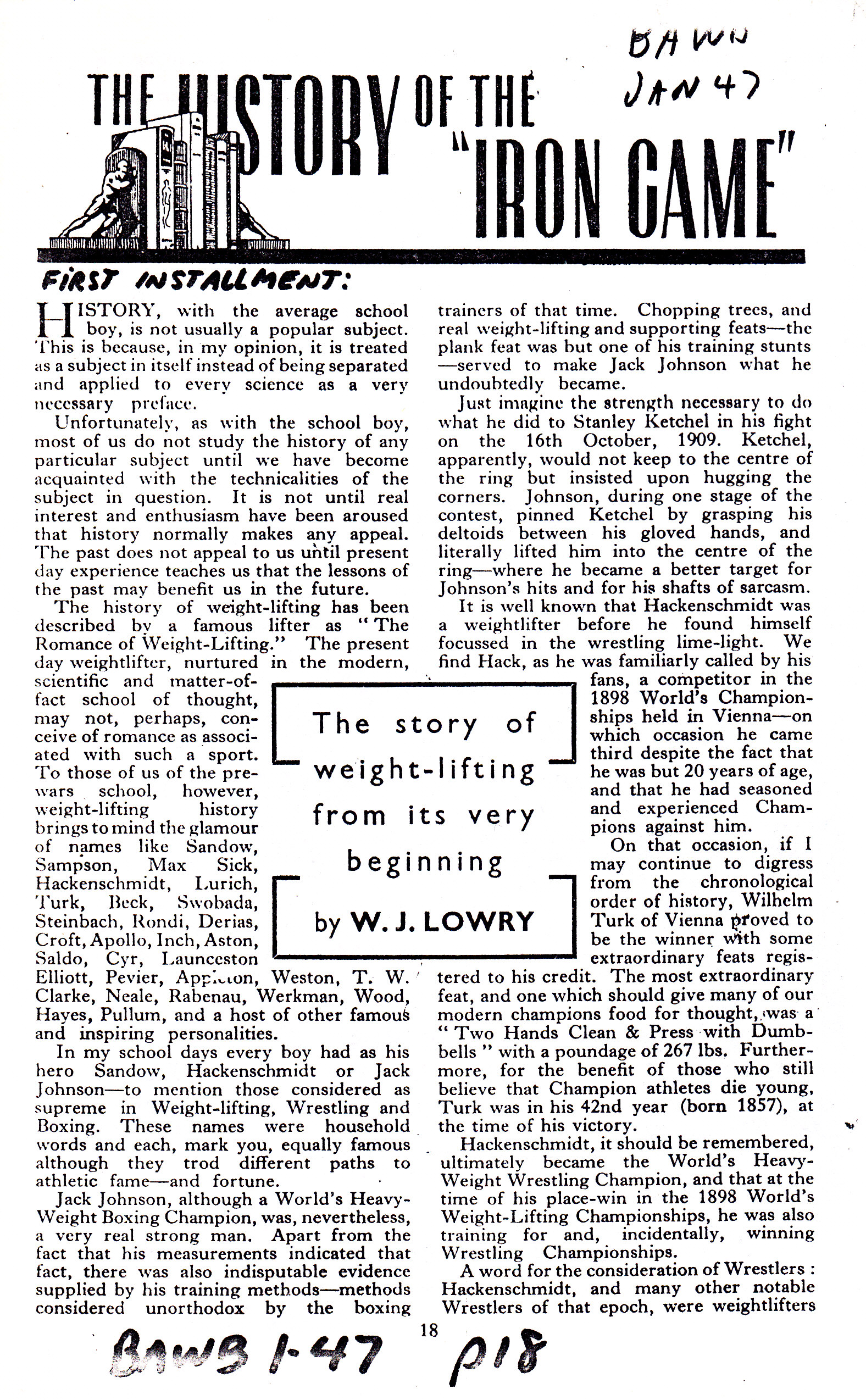 11/10/2011 Entry: "11/11/2011: The British Amateur Weightlifter & Bodybuilder: The Story of WLing from its Very Beginning"