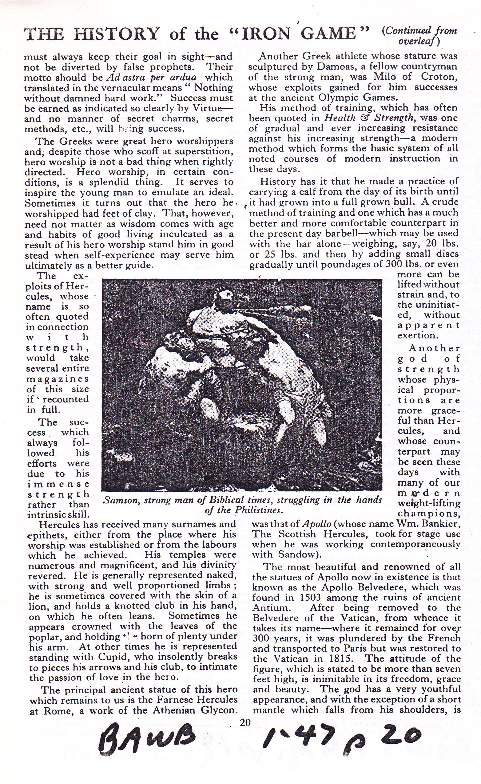 [Previous entry: "11/4/2011: "How Strong Was Ernest Cadine" by David P. Willoughby from Muscle Power October 1953"] [Main Index] [Next entry: "11/18/2011: The British Amateur Weightlifter & Bodybuilder: The Evolution of Strength from Primitive Times"]