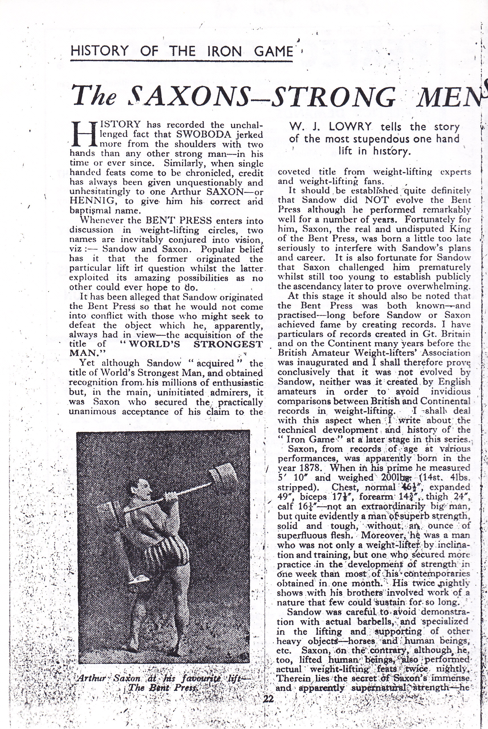 01/20/2012 Entry: "1/20/2012: The British Amateur Weightlifter & Bodybuilder: January 1948 - The Saxons- Strong Men Superb"
