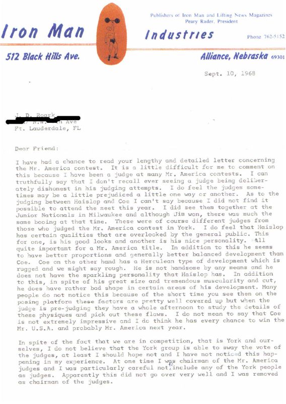 11/11/2004 Entry: "11/12/2004: Letter from Peary Rader to Joe Roark Sep. 10, 1968"
