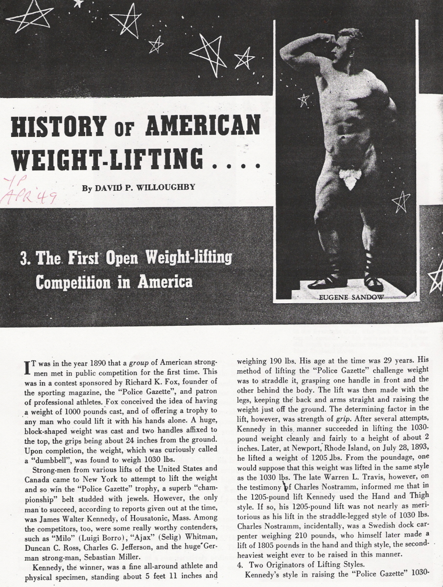 [Previous entry: "3/8/07: Otis Lambert's measures by DPW from Your Physique, April 1949"] [Main Index] [Next entry: "3/23/07: History of American WL by Willoughby (Continued)"]