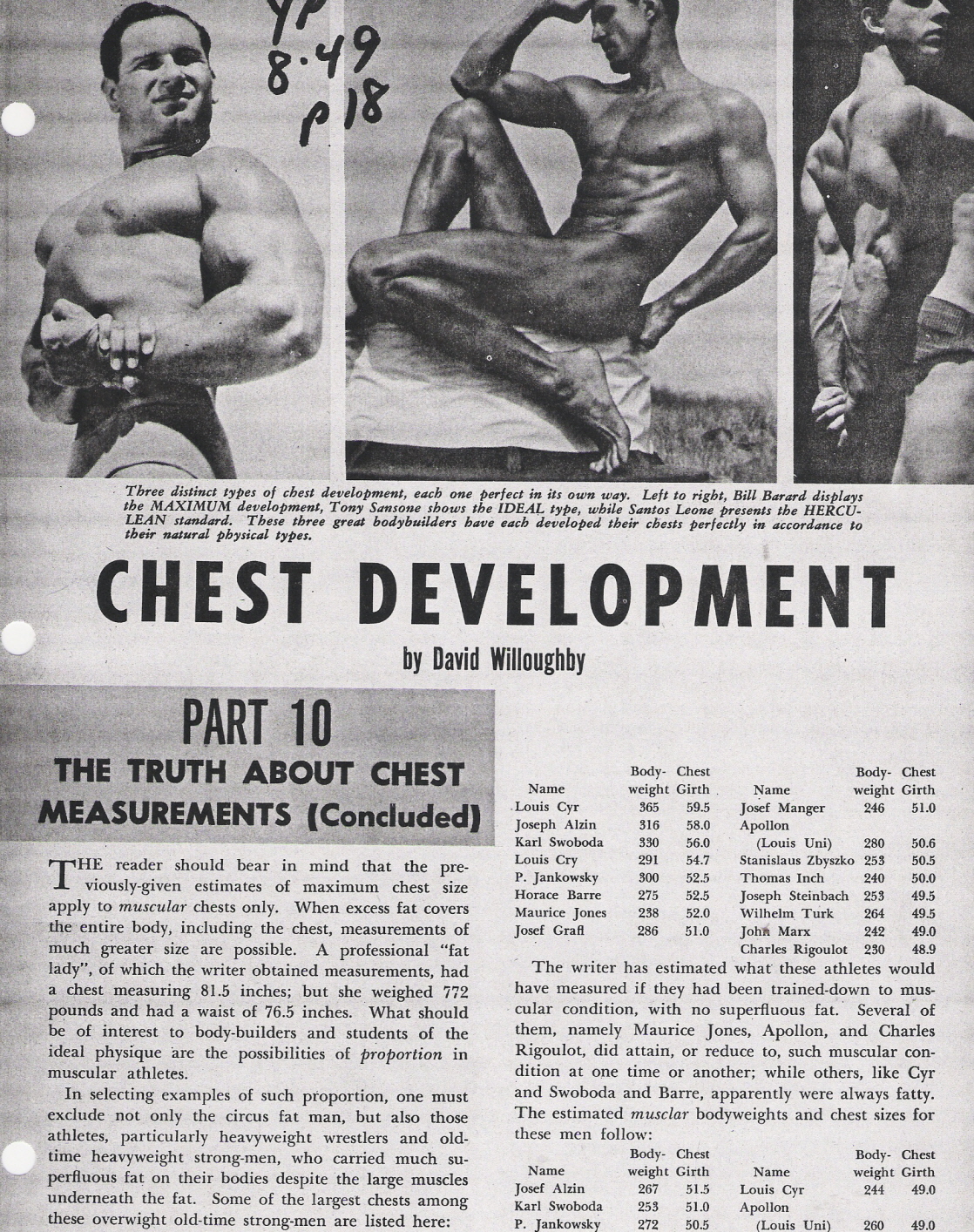 07/13/2007 Entry: "7/13/07: Conclusion by Willoughby on Chest Measurements from Your Physique August 1949"