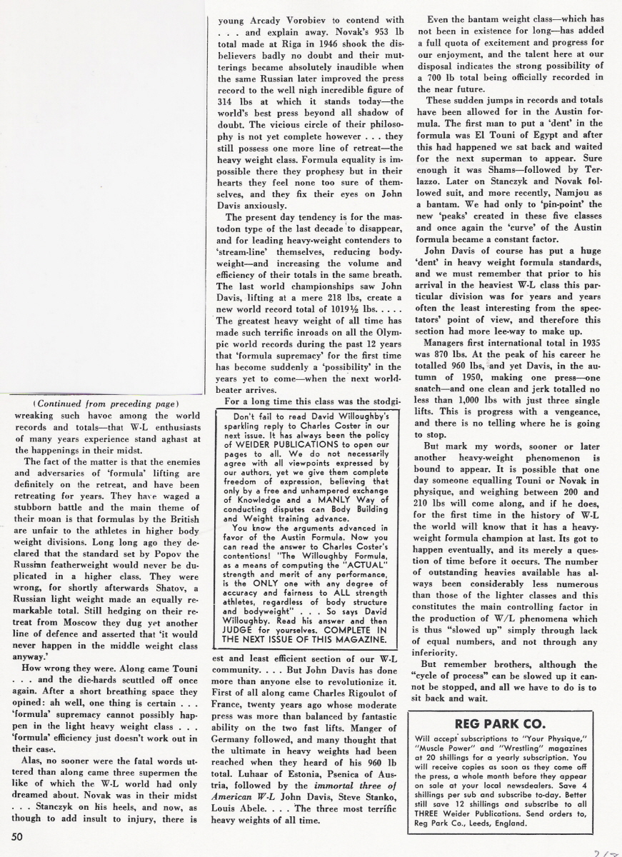 [Previous entry: "5/16/2008: Charles Coster on the Austin Formula, Your Physique July 1951"] [Main Index] [Next entry: "5/30/2008: Willoughby's reply to the Austin Formula, Your Physique August 1951"]