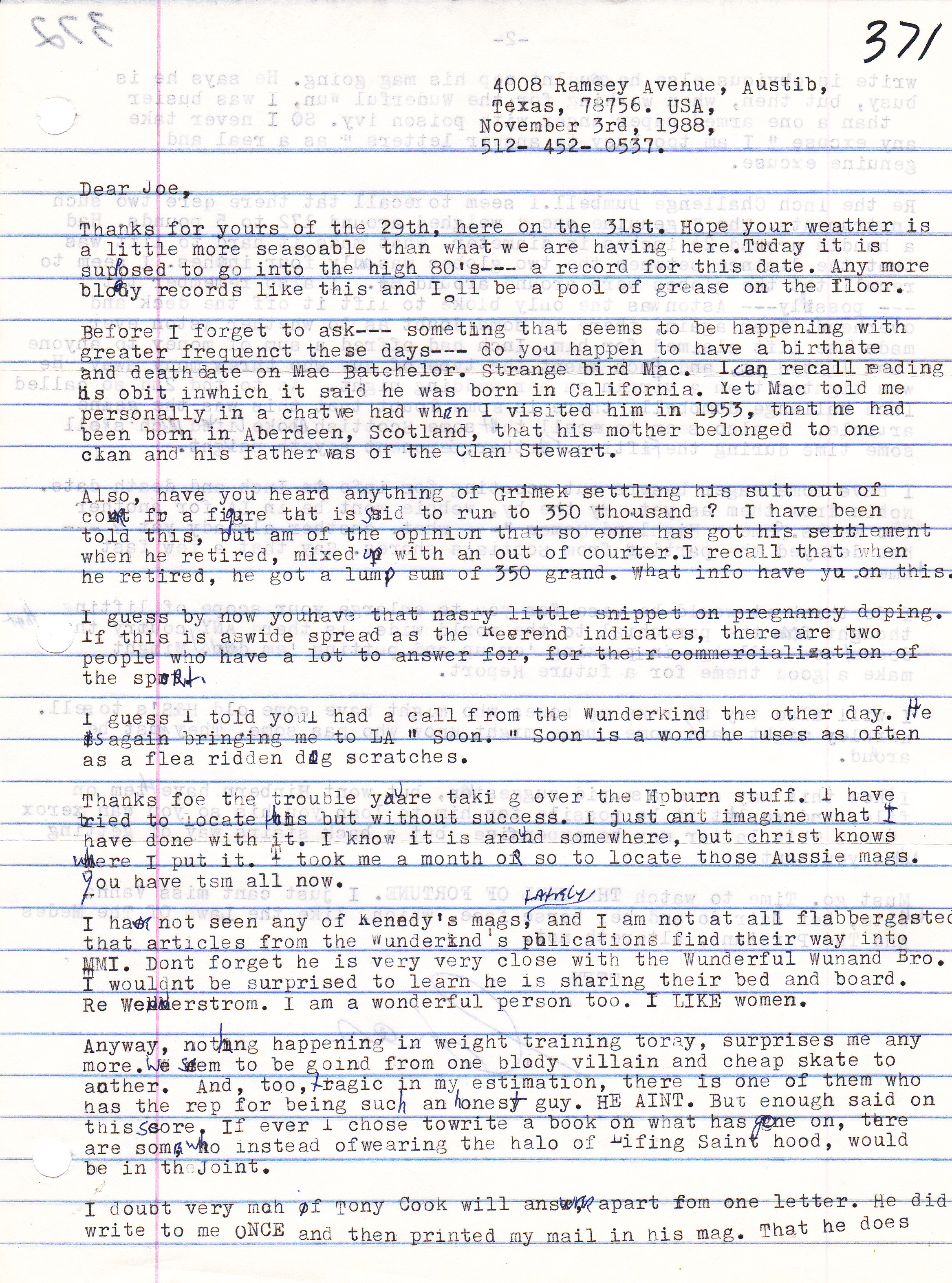 [Previous entry: "6/4/2010: A Letter from Charles A. Smith to Joe Roark"] [Main Index] [Next entry: "6/18/2010: Letter from Charles A. Smith to Joe Roark November 13, 1987"]