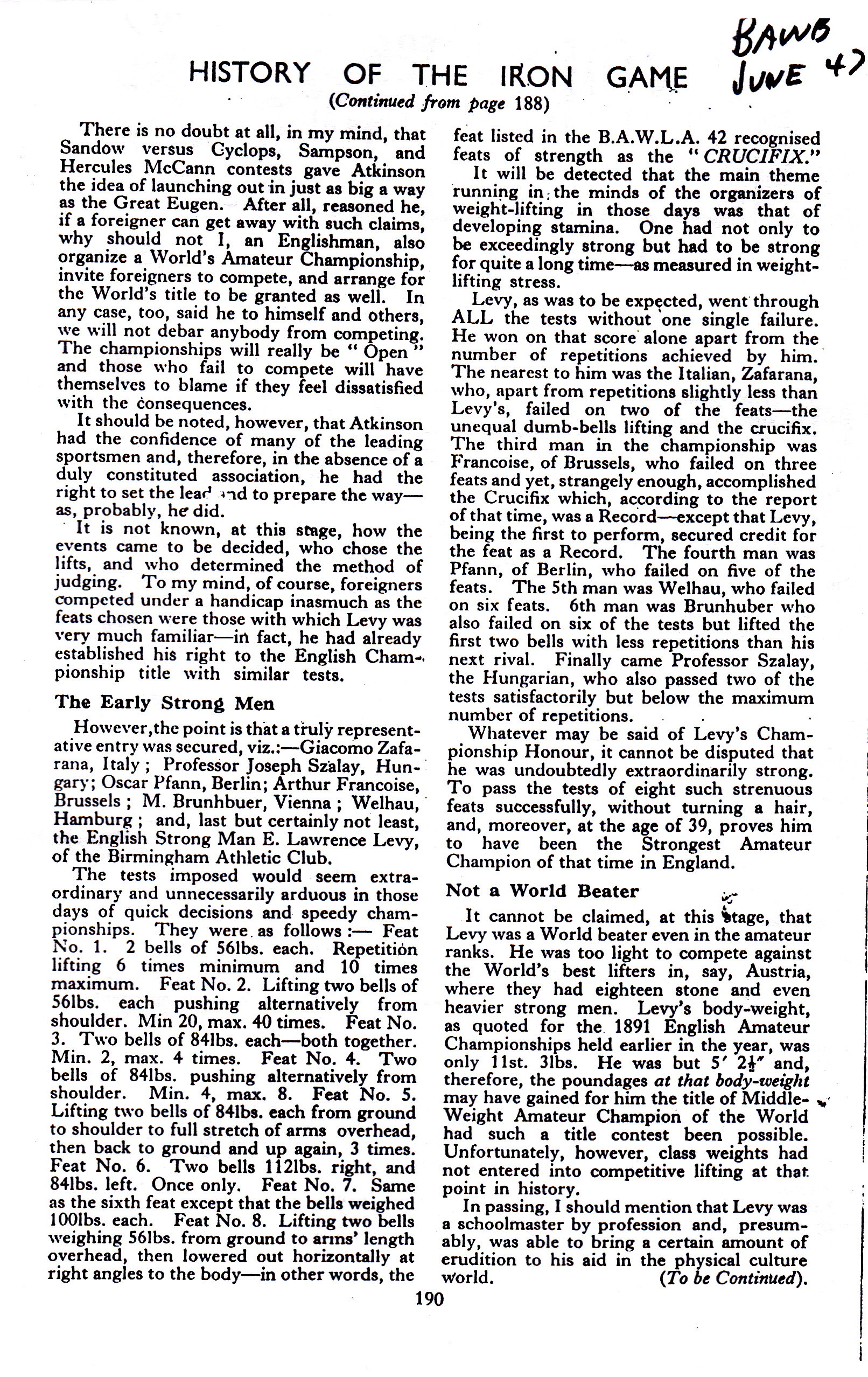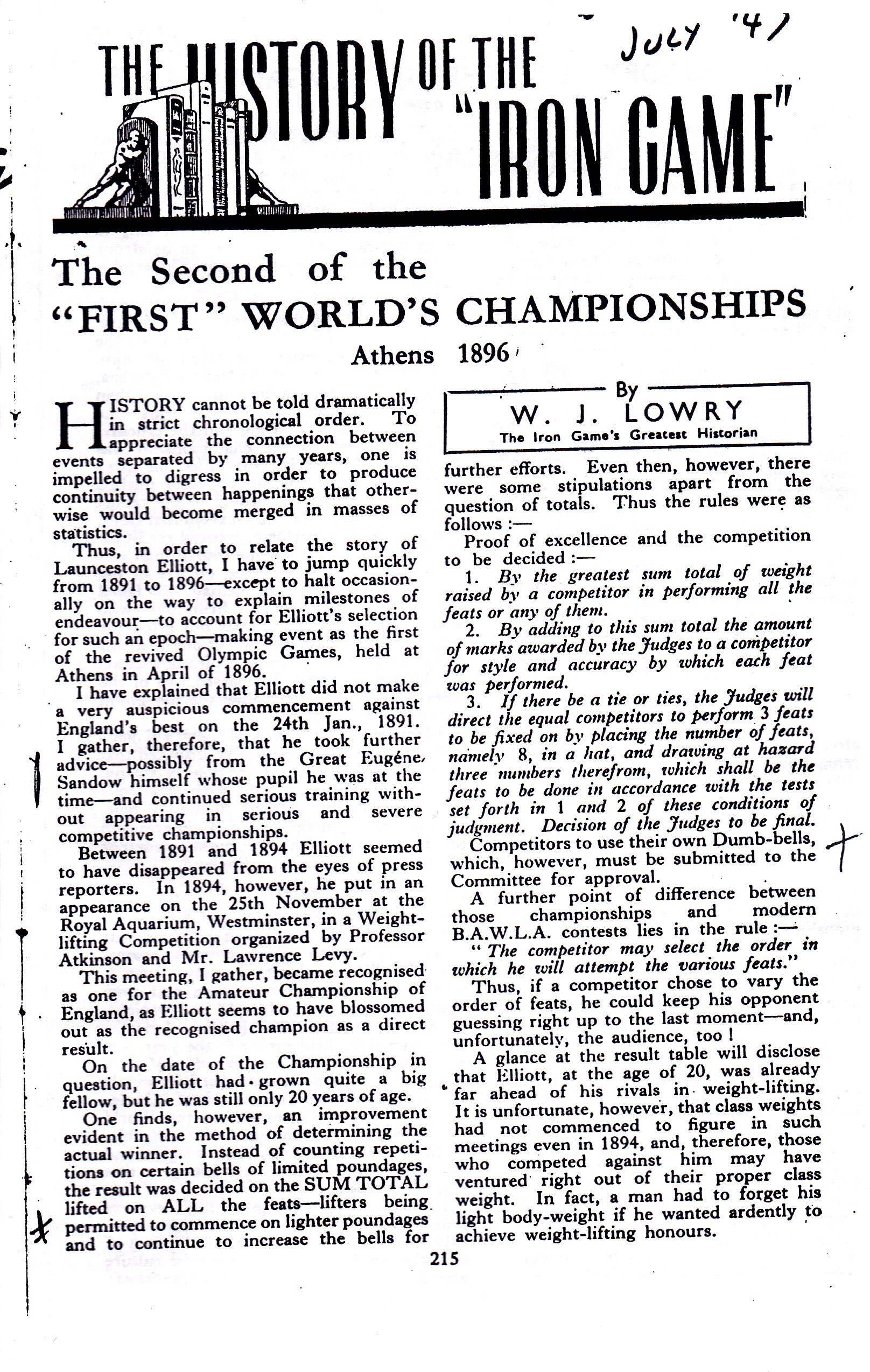 12/10/2011 Entry: "12/10/2011: The British Amateur Weightlifter & Bodybuilder: July 1947: The Second of the 'First' World's Championships, Athens 1896"