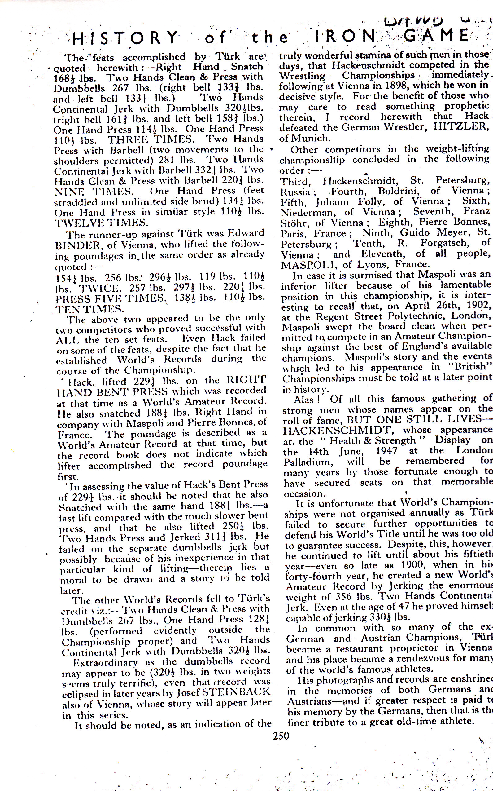 [Previous entry: "12/16/2011: The British Amateur Weightlifter & Bodybuilder: The Third of the 'First' World Championships"] [Main Index] [Next entry: "12/30/2011: The British Amateur Weightlifter & Bodybuilder: How Class-Weights Came to British Weight-Lifting"]