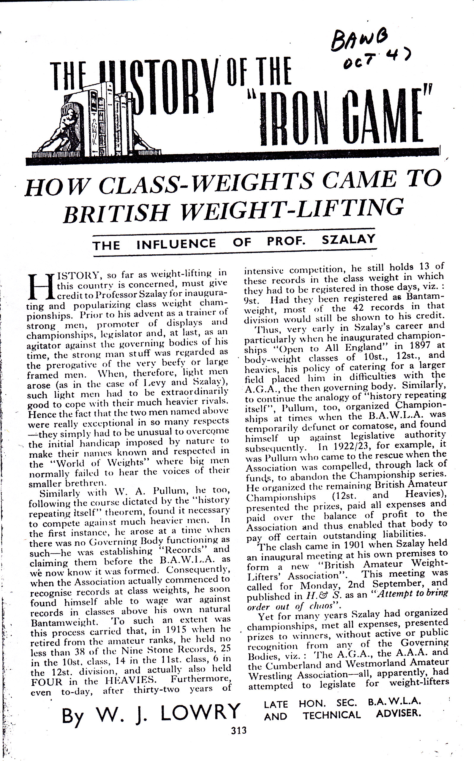 [Previous entry: "12/23/2011: The British Amateur Weightlifter & Bodybuilder: September 1947. The Father of British Weightlifting"] [Main Index] [Next entry: "1/06/2012: The British Amateur Weightlifter & Bodybuilder: November 1947: The Early World's Strongest Men: Cyr, Beck, Steinbach"]