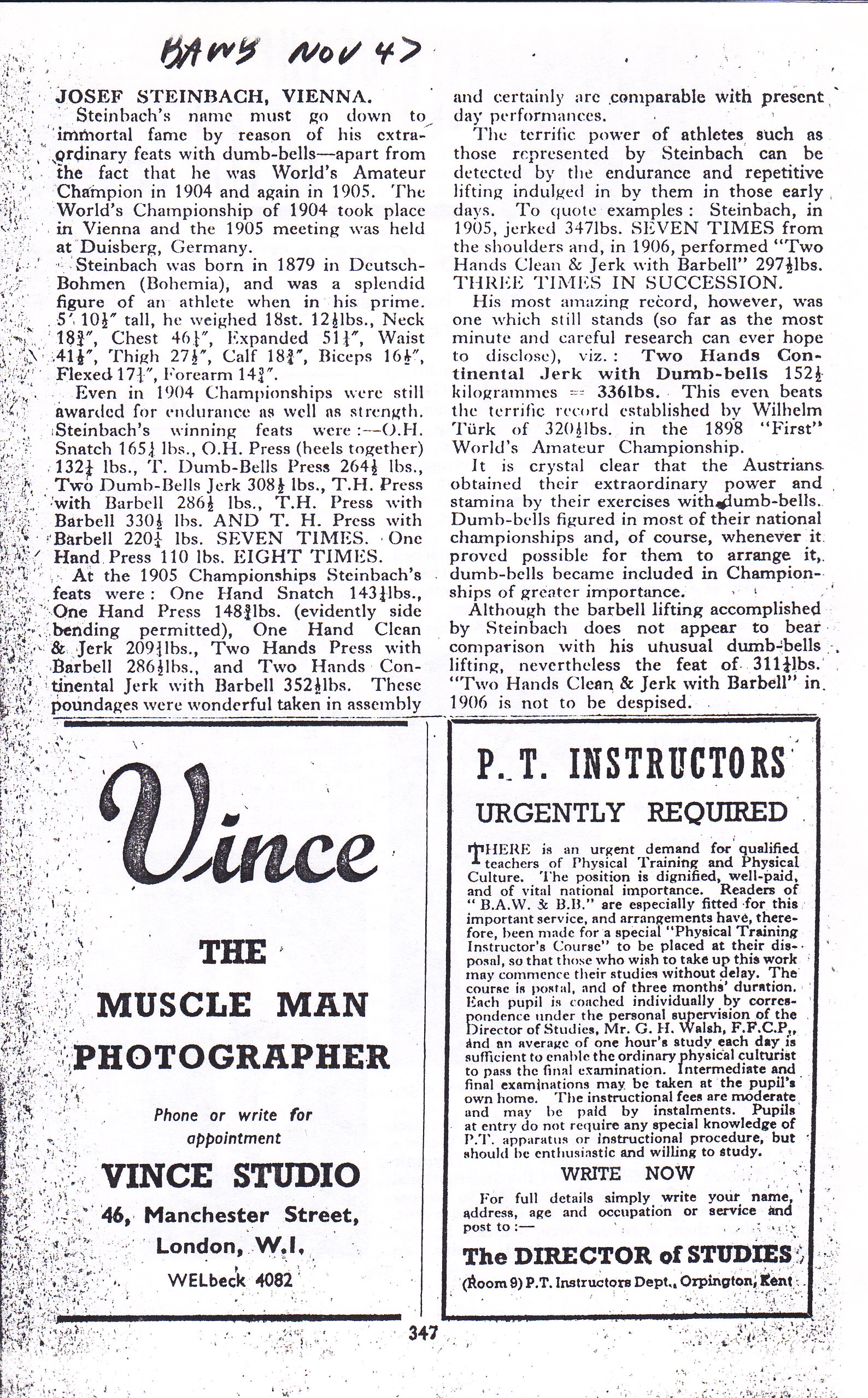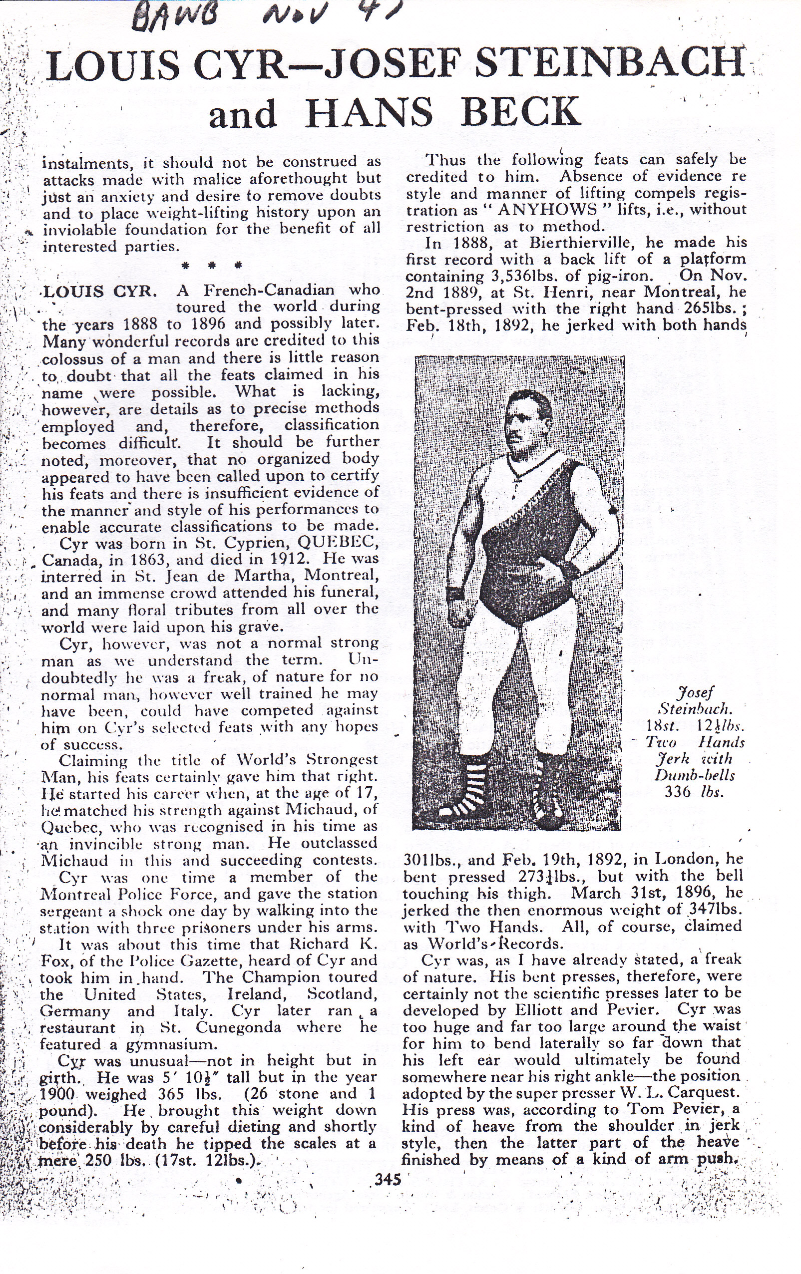 01/06/2012 Entry: "1/06/2012: The British Amateur Weightlifter & Bodybuilder: November 1947: The Early World's Strongest Men: Cyr, Beck, Steinbach"