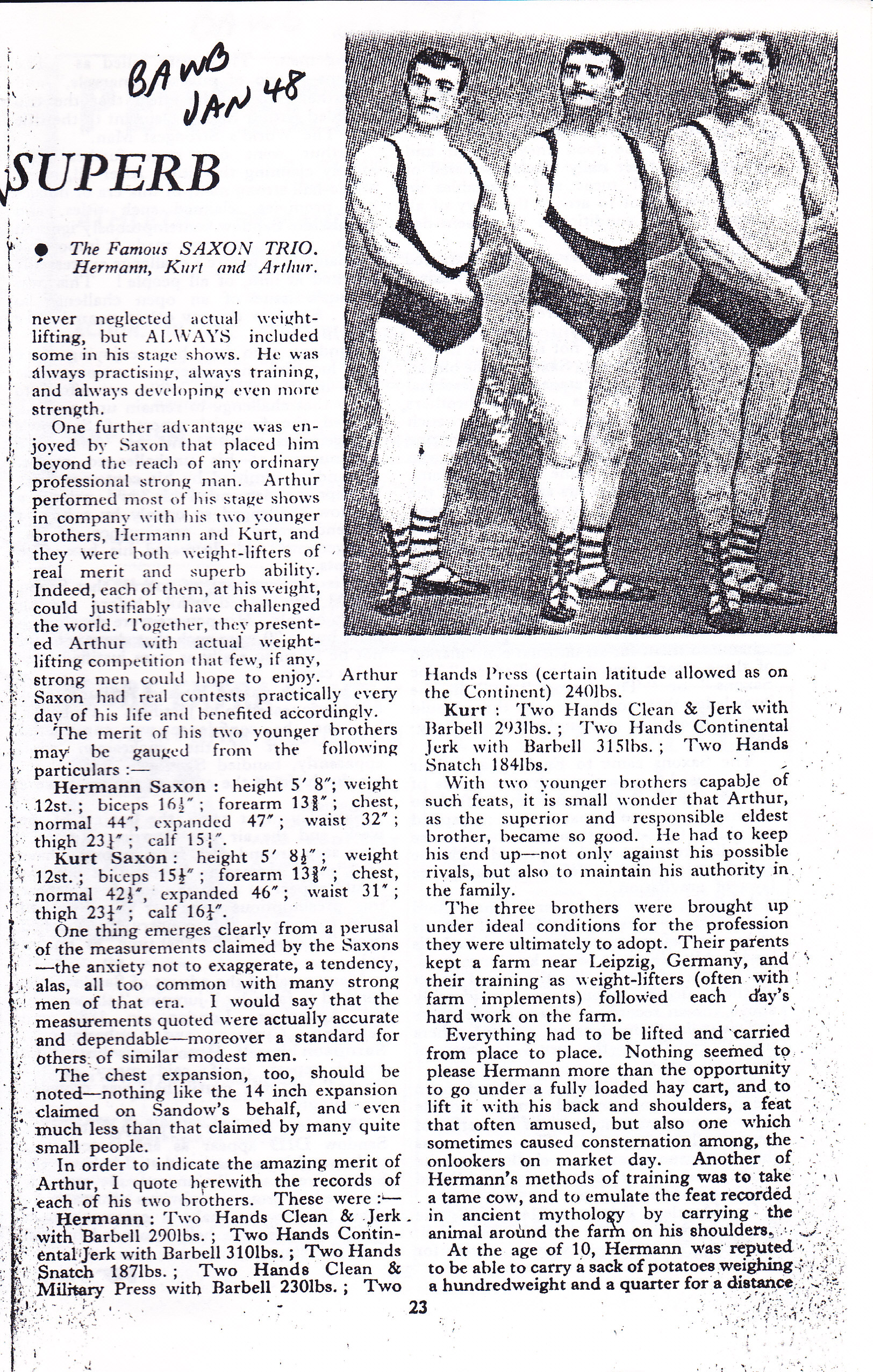 01/20/2012 Entry: "1/20/2012: The British Amateur Weightlifter & Bodybuilder: January 1948 - The Saxons- Strong Men Superb"