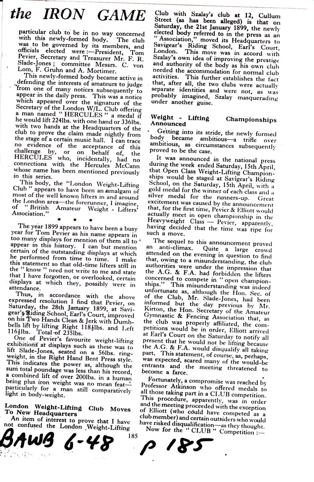 03/08/2012 Entry: "3/9/2012: The British Amateur Weightlifter & Bodybuilder: BAWB June 1948: The 1899 British Championships"