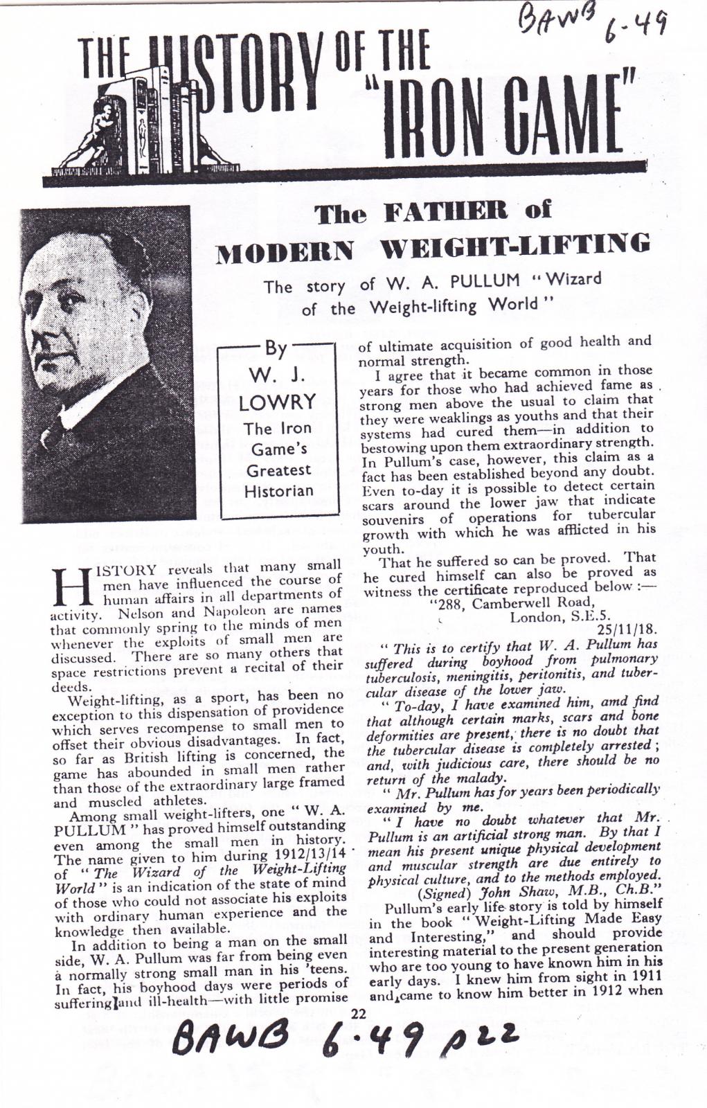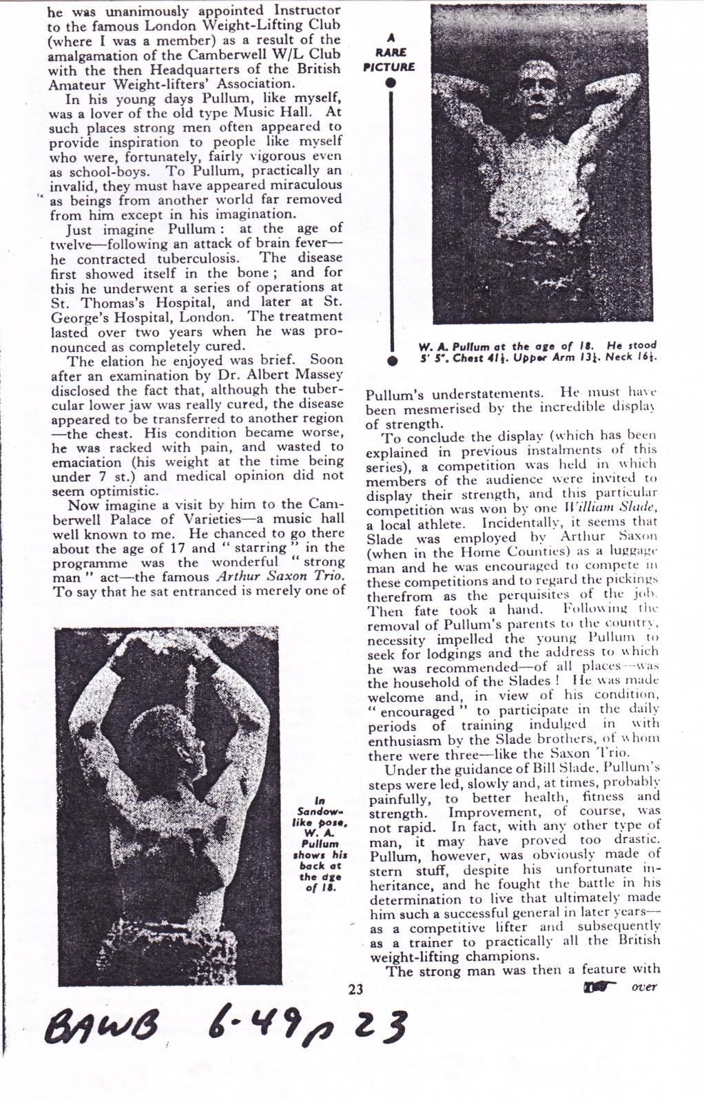 05/13/2012 Entry: "5/13/2012: The British Amateur Weightlifter & Bodybuilder: The Father of Modern Weight-Lifting: W.A. Pullum" from BAWB June 1949"
