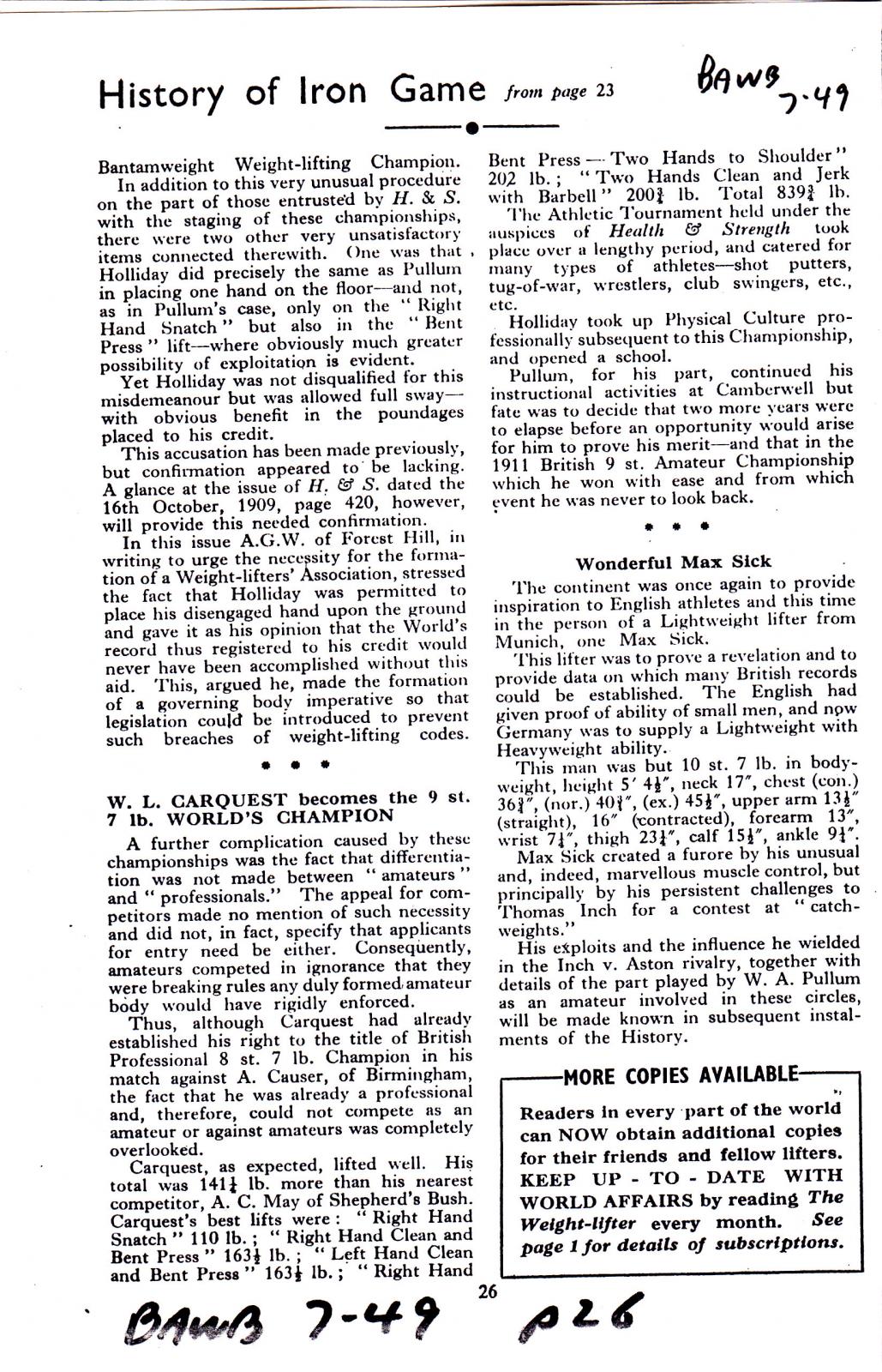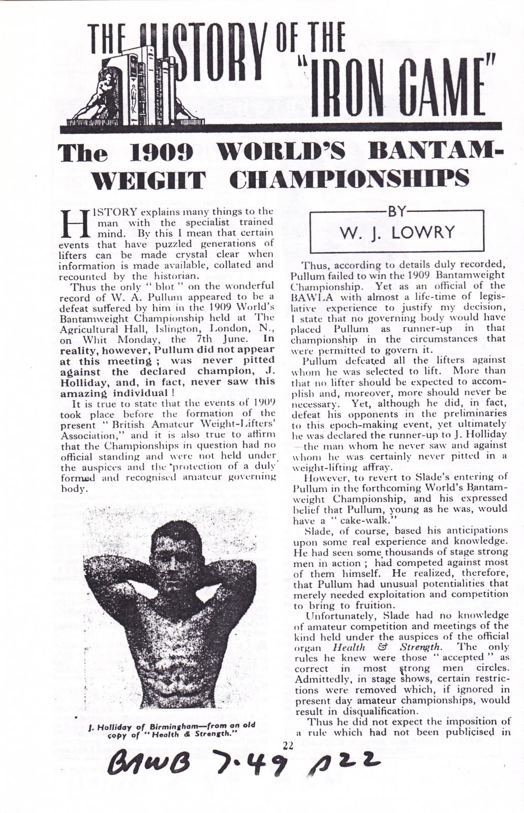 05/20/2012 Entry: "5/20/2012: The British Amateur Weightlifter & Bodybuilder: The 1909 World's Bantamweight Championships; BAWB July 1949"