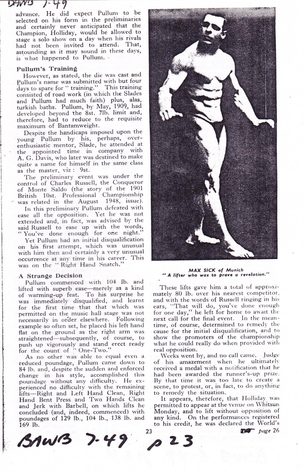 [Previous entry: "5/13/2012: The British Amateur Weightlifter & Bodybuilder: The Father of Modern Weight-Lifting: W.A. Pullum" from BAWB June 1949"] [Main Index] [Next entry: "5/27/2012: The British Amateur Weightlifter & Bodybuilder: MAXICK- The Amazing, BAWB August 1949"]