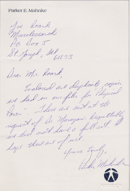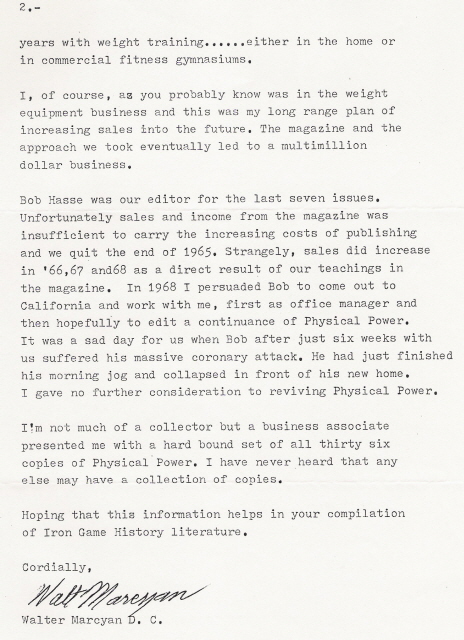 October 15, 1990 letter from Walter Marcyan to Joe Roark regarding some history of the publication Physical Power.
