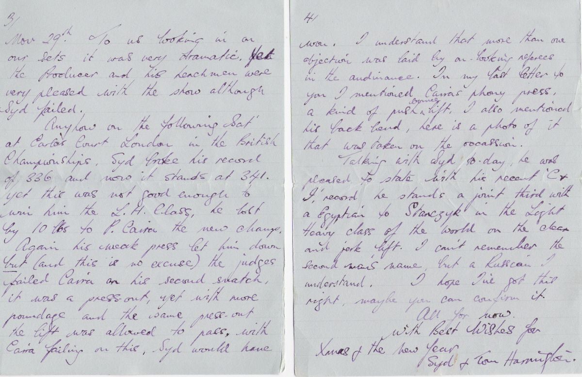 We continue our letter from Syd and Tom Harrington to Ray Van Cleef, of December 6, 1950.