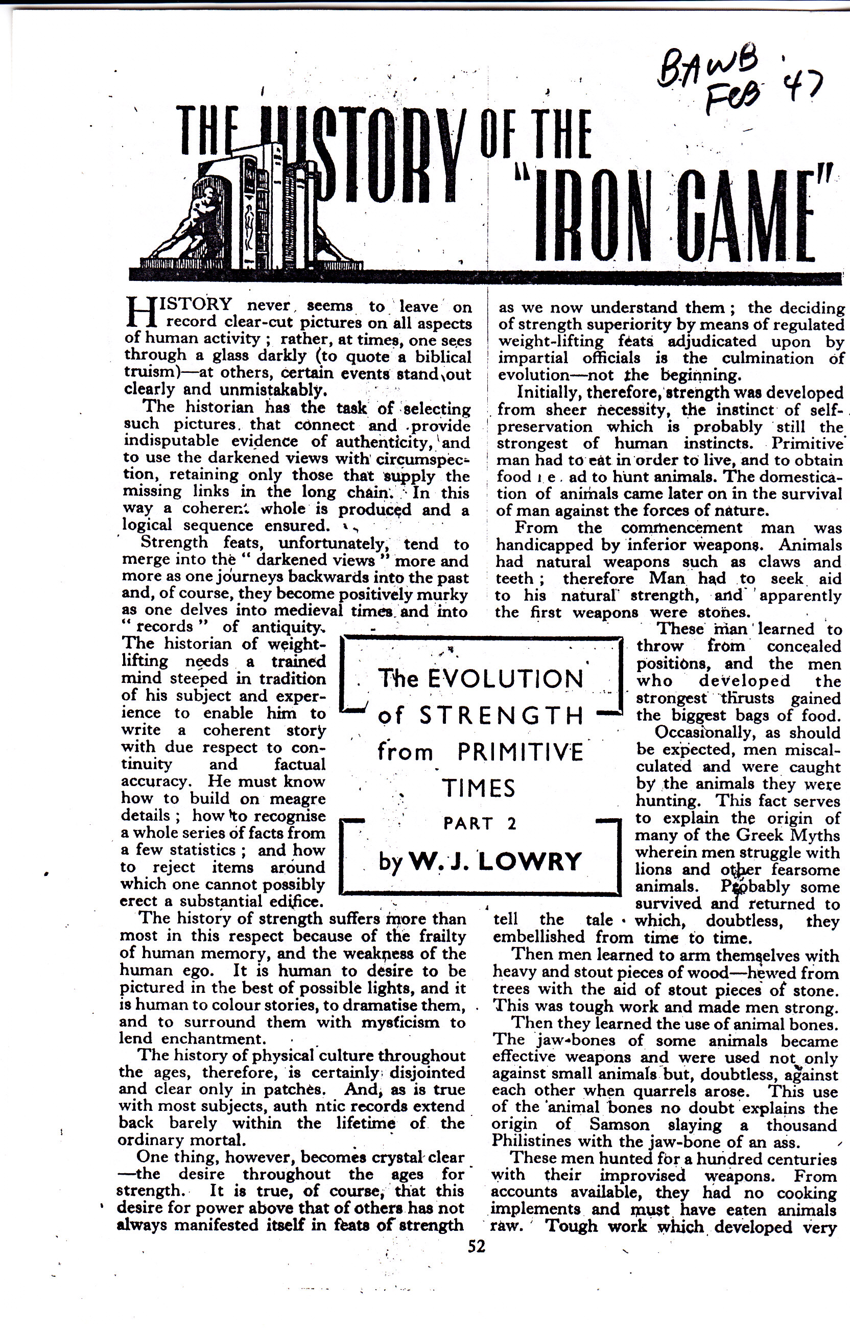 11/18/2011: The British Amateur Weightlifter & Bodybuilder: The Evolution of Strength from Primitive Times